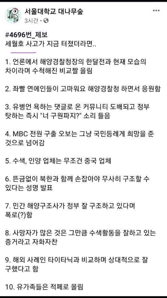서울대학교 대나무숲 - 세월호가 지금 터졌더라면…
