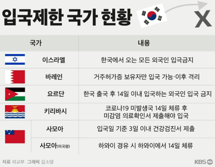 [속보] 한국發 입국금지 17개국·입국제한 13개국으로 늘어
