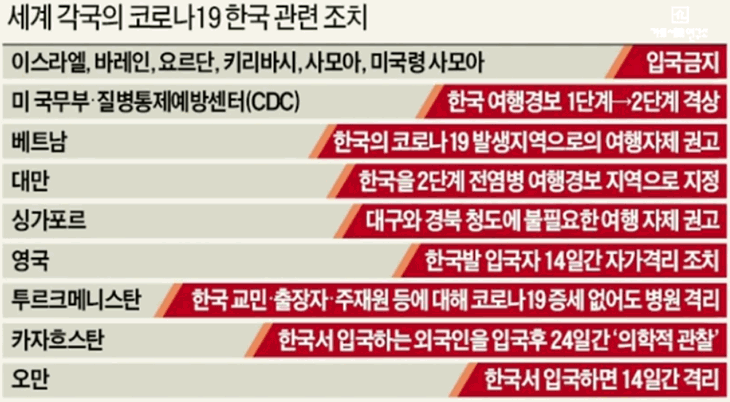 [속보] 한국發 입국금지 17개국·입국제한 13개국으로 늘어<div><a href="https://www.segye.com/newsView/20200226518722" target="_blank">https://www.segye.com/newsView/20200226518722</a></div><div><br></div>