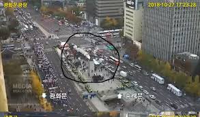 광화문 태극기 집회는 수만 명이 나와서 평화행진을 한 반면, 촛불집회는 고작 100명 남짓이었다.